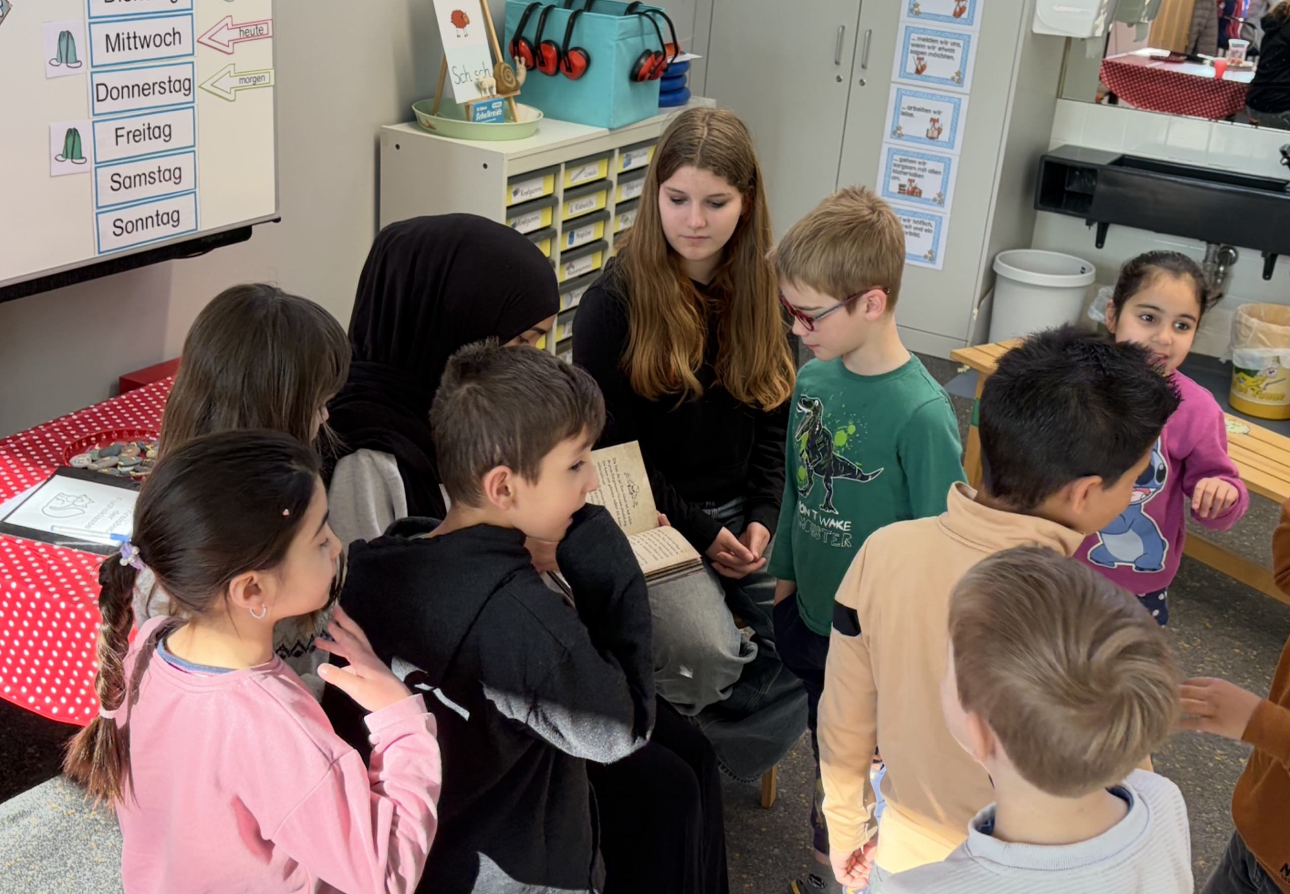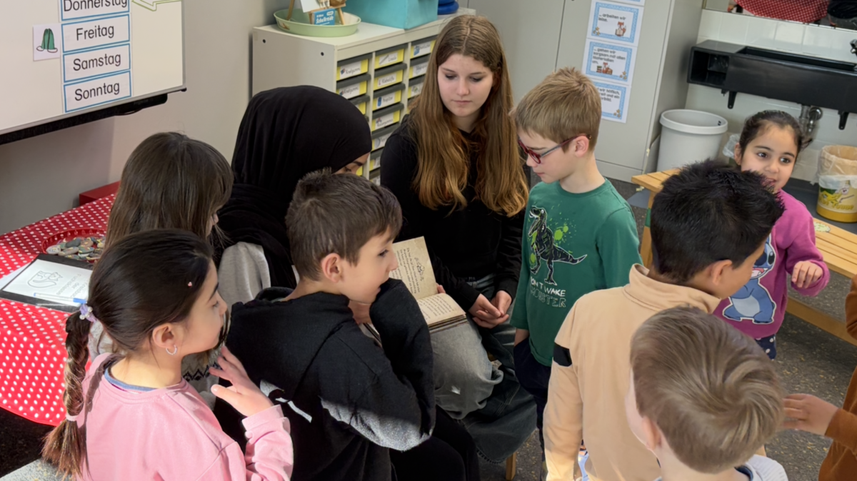 Am 22. April bekamen wir besonderen Besuch von Schülerinnen und Schülern des 7. und 9. Jahrgangs der IGS Achim. Sie lasen den Kindern aus den Jahrgängen 1 und 2 spannende Geschichten vor, denen diese begeistert lauschten. Die Großen waren sichtlich stolz auf ihre Rolle als Vorleserinnen und Vorleser. Schon beim ersten Treffen zeigte sich, wie bereichernd das gemeinsame Miteinander für alle Beteiligten ist. Das Projekt soll daher weitergeführt werden und dazu beitragen, Motivation, Selbstvertrauen und die Freude an Geschichten zu stärken.